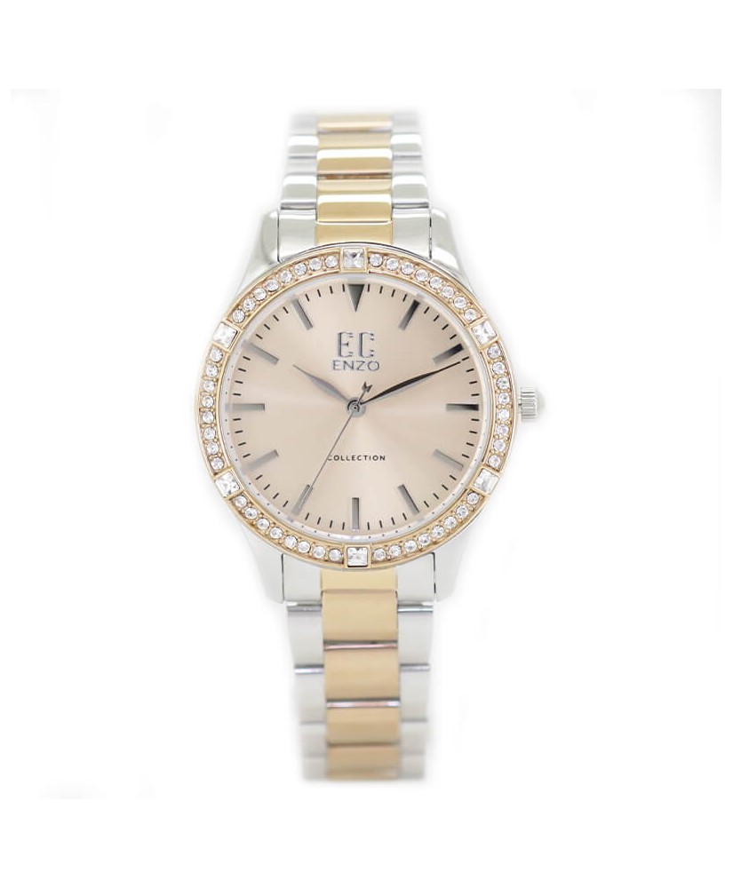 Notre montre Enzo collection de référence EC3434-E pour Femmes, Conçue avec un boîtier en acier inoxydable du couleur bi-couleur/rosé du diamètre 33 mm, un bracelet en acier inoxydable du couleur bi-couleur/rosé et un cadran rosé. La montre est livrée avec son coffret, son sac et son certificat de garantie Enzo collection d'une durée de 2 ans.