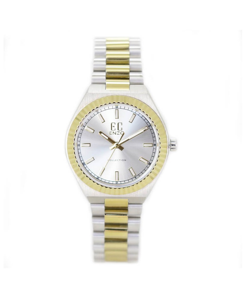 Notre montre Enzo collection de référence EC3968-B pour Femmes, Conçue avec un boîtier en acier inoxydable du couleur bi-couleur/doré du diamètre 35 mm, un bracelet en acier inoxydable du couleur bi-couleur/doré et un cadran gris. La montre est livrée avec son coffret, son sac et son certificat de garantie Enzo collection d'une durée de 2 ans.