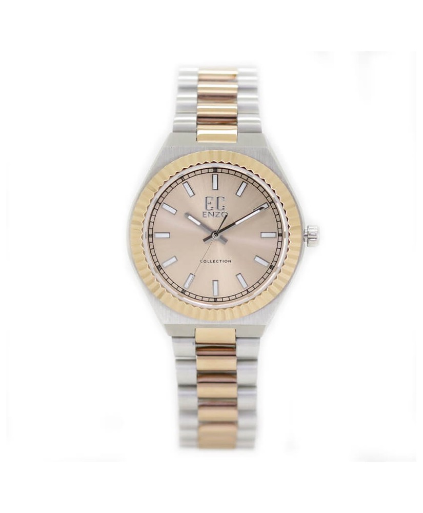 Notre montre Enzo collection de référence EC3968-E pour Femmes, Conçue avec un boîtier en acier inoxydable du couleur bi-couleur/rosé du diamètre 35 mm, un bracelet en acier inoxydable du couleur bi-couleur/rosé et un cadran rosé. La montre est livrée avec son coffret, son sac et son certificat de garantie Enzo collection d'une durée de 2 ans.